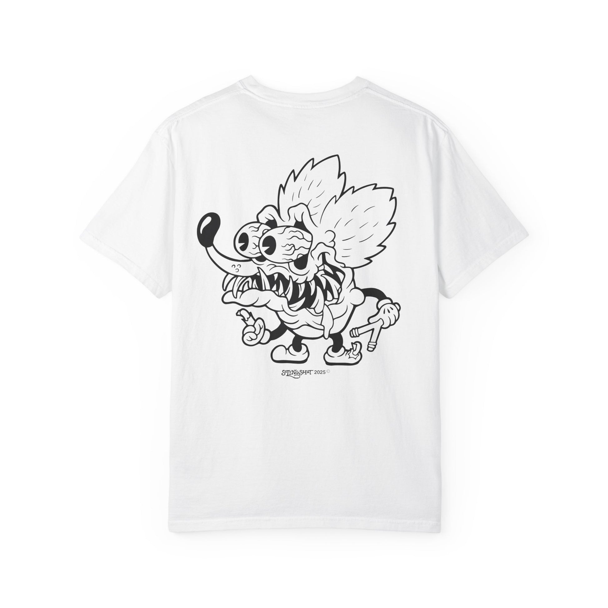 Originally only available to purchasers of our Rosko toy, the mascot tee features a back illustration from resident Slingshot artist @AshMadeThis along